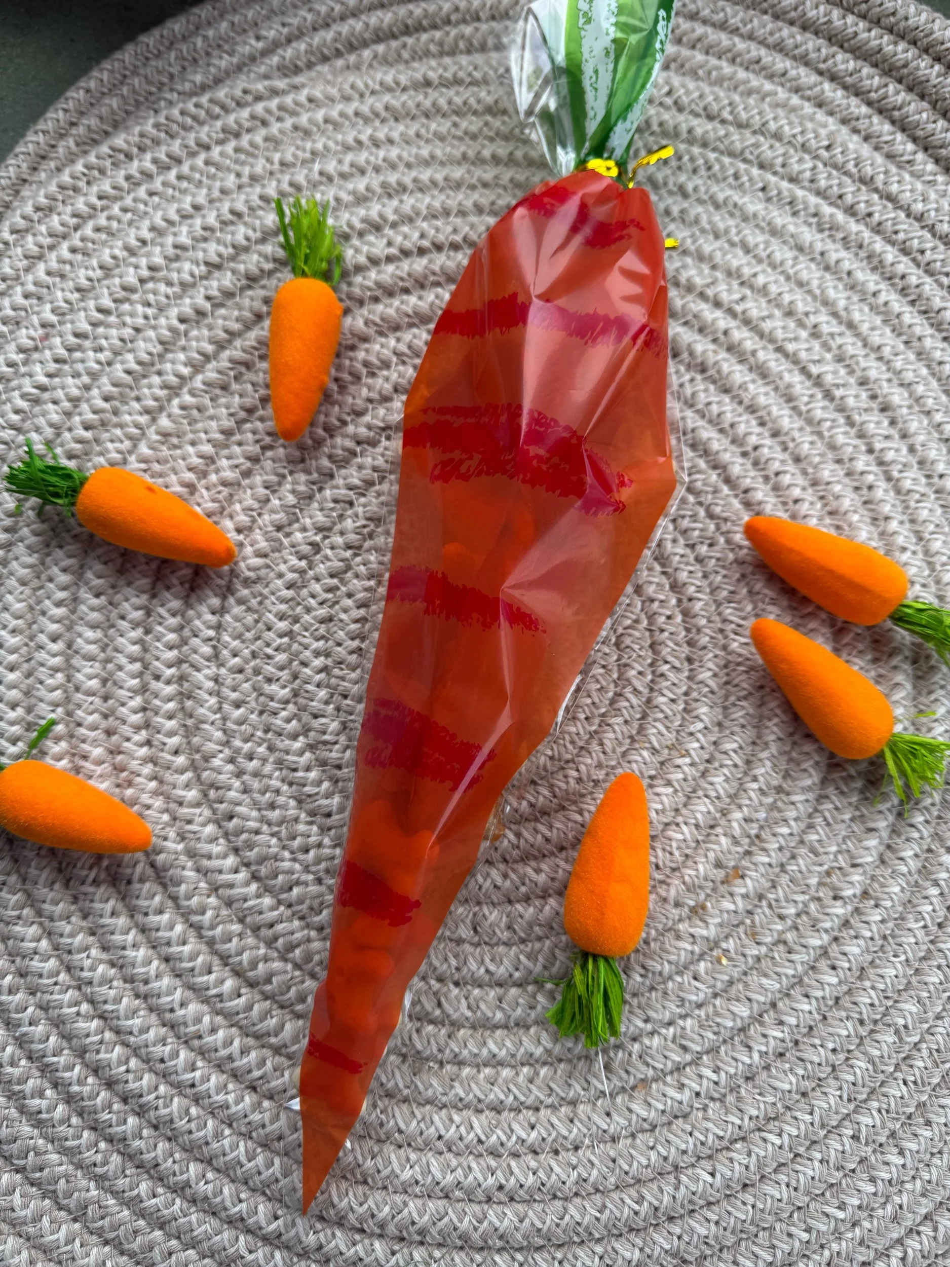 A cute little carrot bag filled with amazing easter goodies: